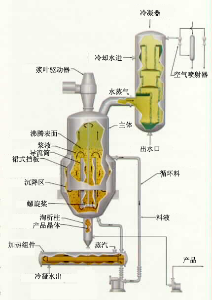 產(chǎn)品簡(jiǎn)介:DTB型真空蒸發(fā)結(jié)晶器 DTB蒸發(fā)結(jié)晶器(導(dǎo)流筒結(jié)晶器)是一種高效率的結(jié)晶設(shè)備,由PLC控制物料溫度,其獨(dú)特的結(jié)構(gòu)和工作原理決定了它具有傳熱效率高、配置簡(jiǎn)單、操作控制方便、操作
