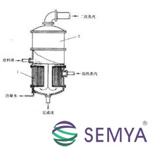 蒸發(fā)器主要由加熱室及分離室組成。按加熱室的結(jié)構(gòu)和操作時(shí)溶液的流動(dòng)情況,可將工業(yè)中常用的間接加熱蒸發(fā)器分為循環(huán)型(非膜式)和單程型(膜式)兩大類。