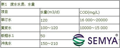 生產(chǎn)廢水主要來源于浸泡、胚芽分離、纖維洗滌和脫水等工序,其主要成分為淀粉、糖類、蛋白質(zhì)、纖維素等有機物質(zhì)和氮、磷等無機物,各種廢水水質(zhì)、水量見表1。